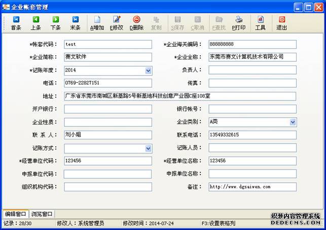 操作路徑:系統(tǒng)管理->企業(yè)帳套管理本系統(tǒng)支持多帳套(需相應(yīng)版本支持)管理,用戶可以為每個企業(yè)設(shè)立一個單獨的帳套,通過設(shè)置不同的記帳年度來限制當(dāng)前的操作和查詢。當(dāng)用戶按年度為企業(yè)設(shè)立新帳套時,可以通過工具中的企業(yè)帳套復(fù)制功能,將基礎(chǔ)數(shù)據(jù)等從舊帳套復(fù)制到新帳套中。