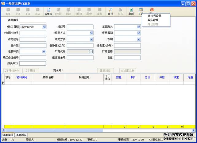 記錄材料進出口以一般貿易方式的單據,本清單保存后可生成報關單。